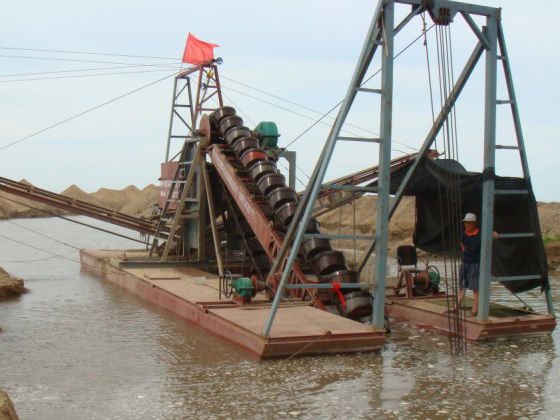挖沙船是挖沙机械,扒沙王,顾名思义即沙石采掘工具,多为流动作业之用。浮体采用拼装式箱型结构。配有挖掘装置、筛选装置、提升装置、传送装置等。通过动力装置驱动挖斗上料,石块通过筛选传由输送带传出,沙子由输送带传到指定地点。